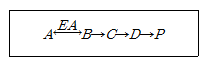 66. 아래의 대사경로에서 최종 생산물 P가 배지에 다량 축적되었을 때 A→B로 되는 반응에 관여하는 효소 EA의 작용을 저해시키는 것을 무엇이라고 하는가?