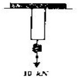 17. 그림과 같이 탄성 막대 끝에 매달려 있는 스프링에 하중 10kN이 작용할 때, 이 시스템 전체에 저장되는 탄성 변형에너지는? (단, 막대의 단면적은 2cm2, 탄성계수는 10GPa, 길이는 0.5m이고 스프링의 스프링 상수는 500kN/m이다.)