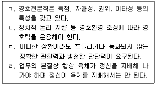 30. 경호원의 자격과 윤리에 관한 내용으로 옳지 않은 것은 모두 몇 개인가?