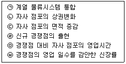 9. 아래 글상자의 괄호 안에 들어갈 유통경로 경쟁으로 가장 옳은 것은?