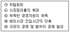 11. 아래 글상자에서 유통기업의 인수 및 합병(M&A) 주요 동기를 모두 고르면?
