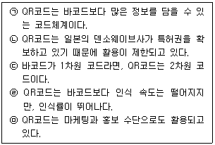 75. 아래 글상자에서 QR코드에 대한 설명으로 옳지 않은 것만을 나열한 것은?