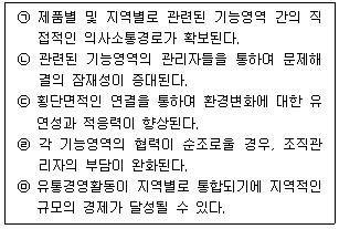 19. 아래 글상자에서 글로벌매트릭스조직 (global matrix structure)의 장점에 대한 설명으로 옳은 것을 모두 고르면?