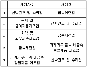 44. 2023년 산업재해 현황에서 제조업 중 재해자수가 가장 많은 업종과 재해율이 가장 높은 업종으로 묶은 것은?