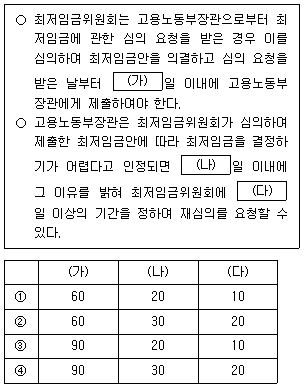 16. 「최저임금법」상 최저임금의 결정에 대한 설명 중 (가)~(다)에 들어갈 내용을 바르게 연결한 것은?