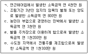 11. 소득세법령상 거주자의 비과세소득에 해당하는 것만을 모두 고르면? (단, 연근해어업, 민박 및 전통주는 소득세법령에 정한 요건을 충족하고, 각 항목은 상호 독립적이다)