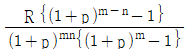 20. 제1회 수입은 m년 후에, 제2회부터는 n년마다 R원씩 영구히 얻을 수 있는 이자의 전가합계식은? (단, p는 연이율이다)